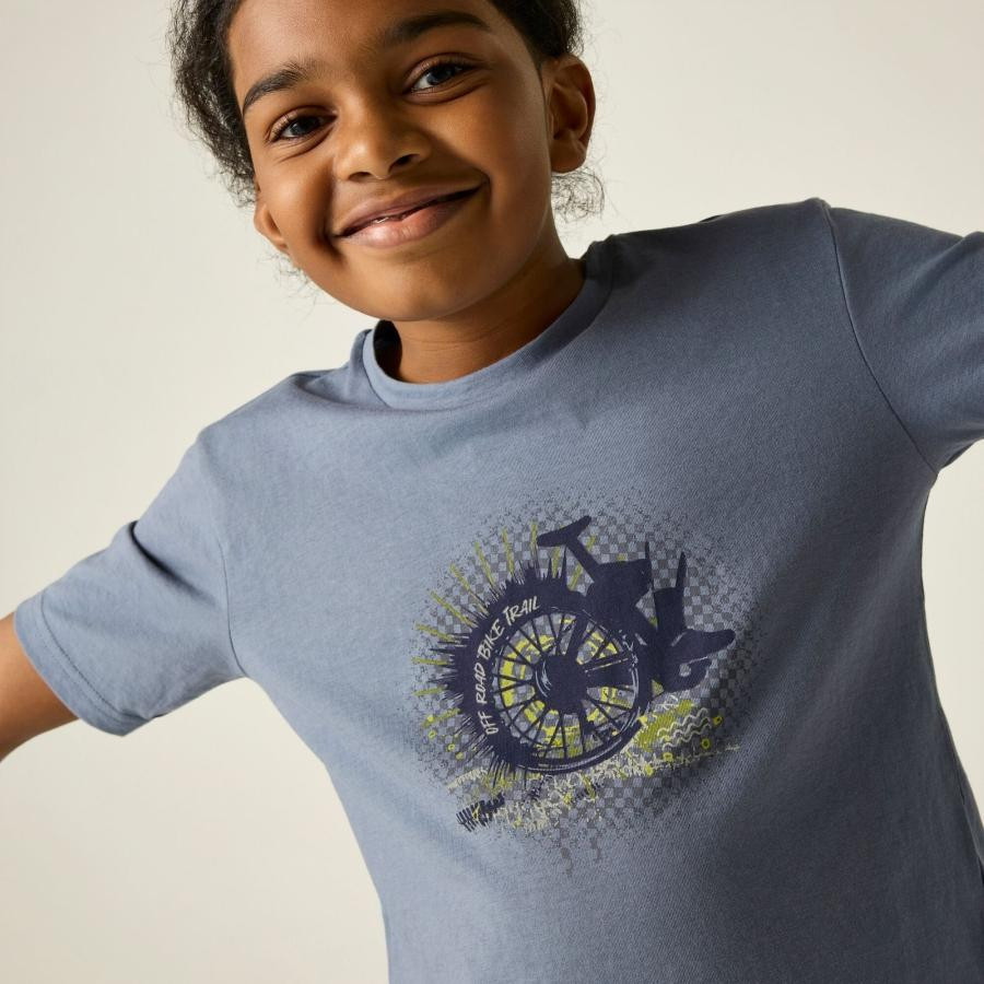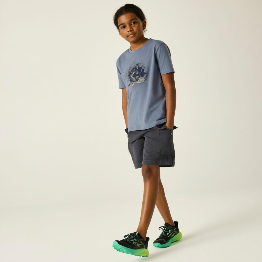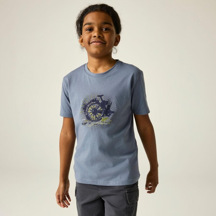 Ez a gyerek póló puha tapintású, kényelmes pamut single jersey anyagból készült, amely kellemes viseletet biztosít a mindennapokban. A grafikus nyomat modern megjelenést ad, míg az UPF 50+ UV-védelem extra biztonságot nyújt szabadtéri programok során.
