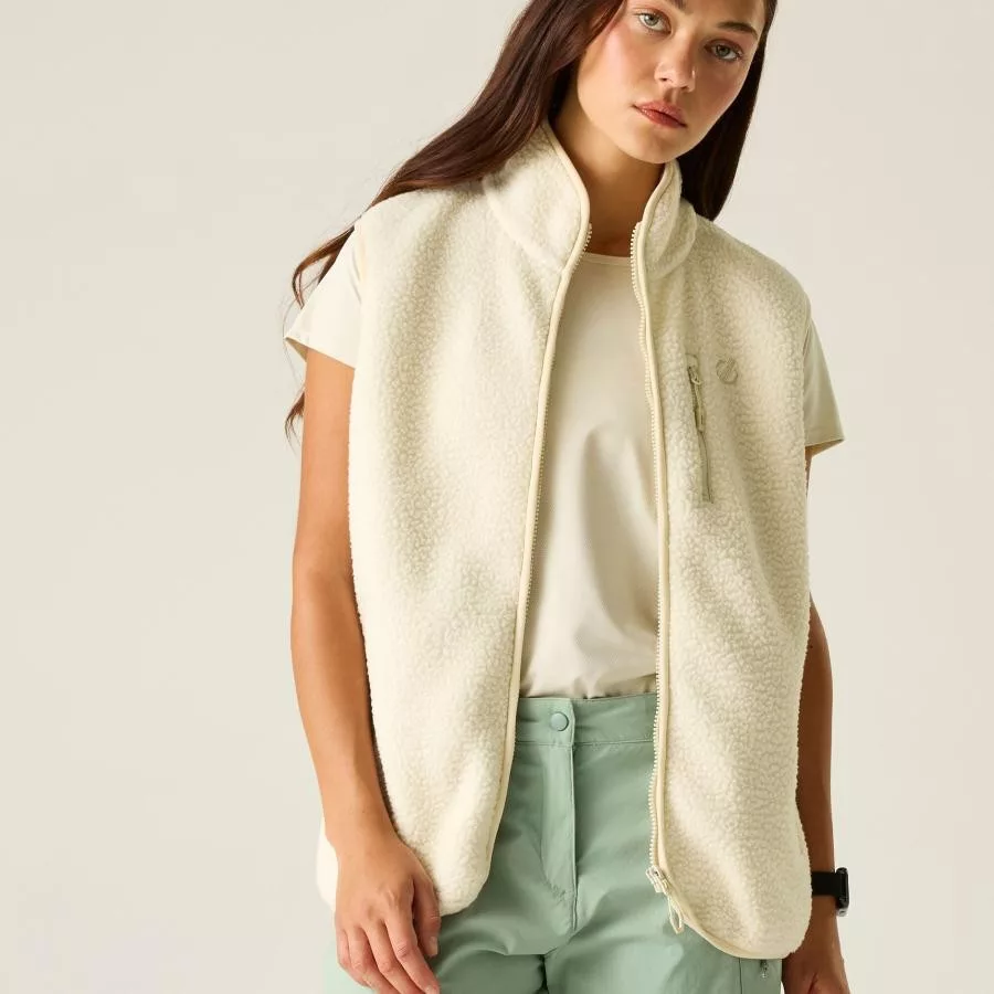 Ez a női borg polár mellény újrahasznosított poliészterből készült, 270 g/m? súlyú, vastag és puha tapintású anyagból. A meleg, mégis légáteresztő konstrukció optimális komfortot biztosít hûvösebb időben, míg a rugalmas szegélyek stabil illeszkedést adnak réteges öltözködéshez.
