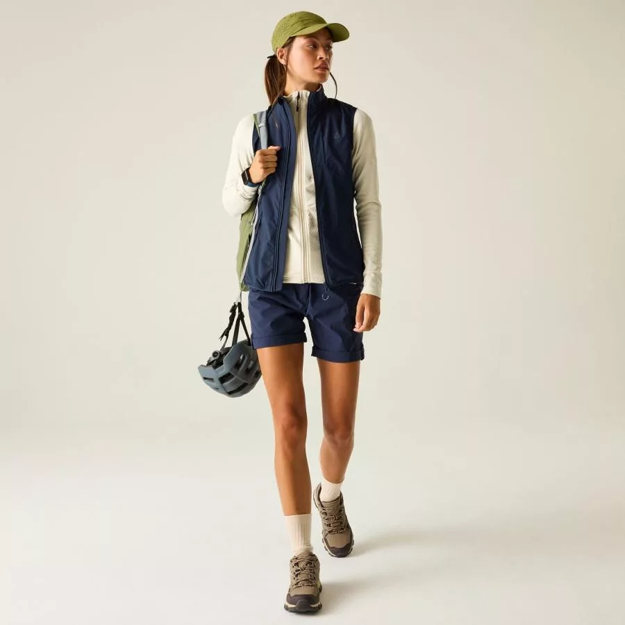 Ez a női technikai kabát könnyû, ultra stretch poliészter anyagból készült ripstop texturált panelekkel, ILUS Lite konstrukcióval. A rugalmas, alacsony súlyú kialakítás biztosítja a szabad mozgást, míg a szélálló panelek csökkentik a szélhûtést aktív használat során. A tartós vízlepergető bevonat és a kopásálló szerkezet megbízható teljesítményt nyújt változékony időjárási körülmények között.