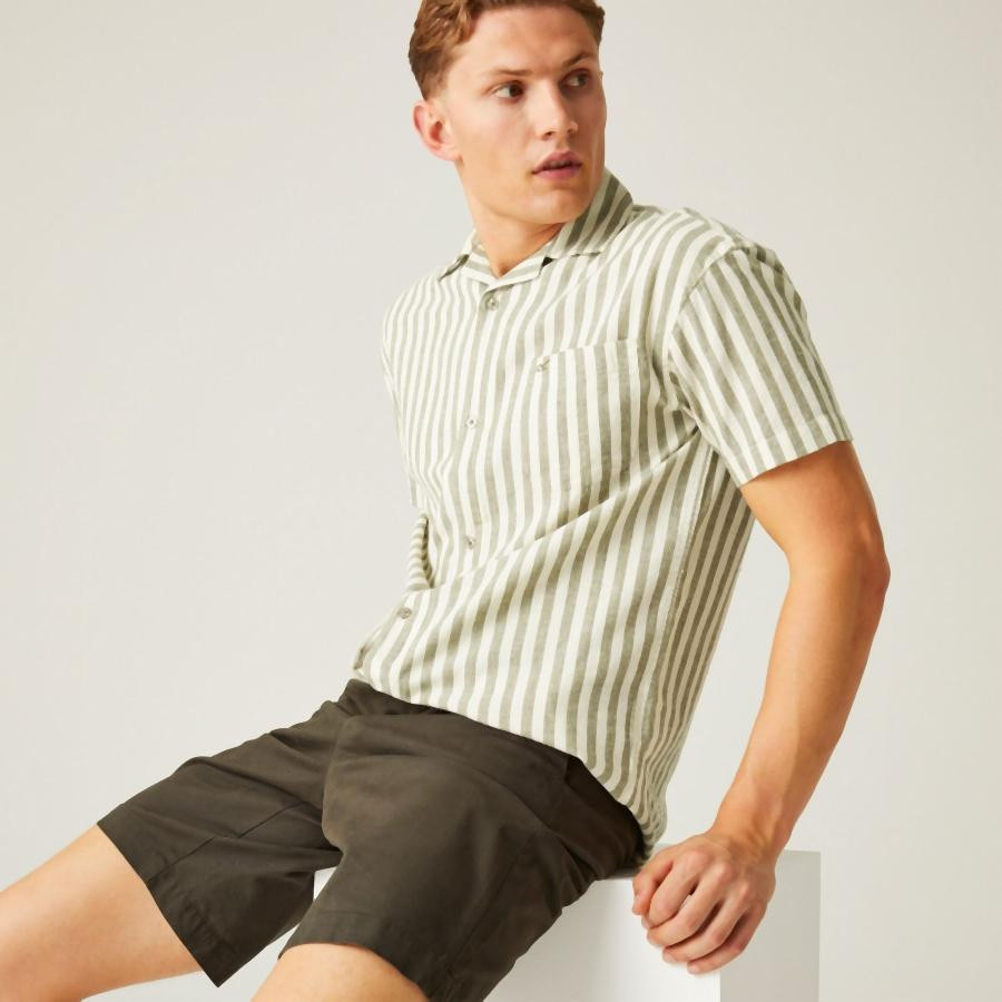 Regatta ShoreBayShirt II Férfi pamut len ing zöld