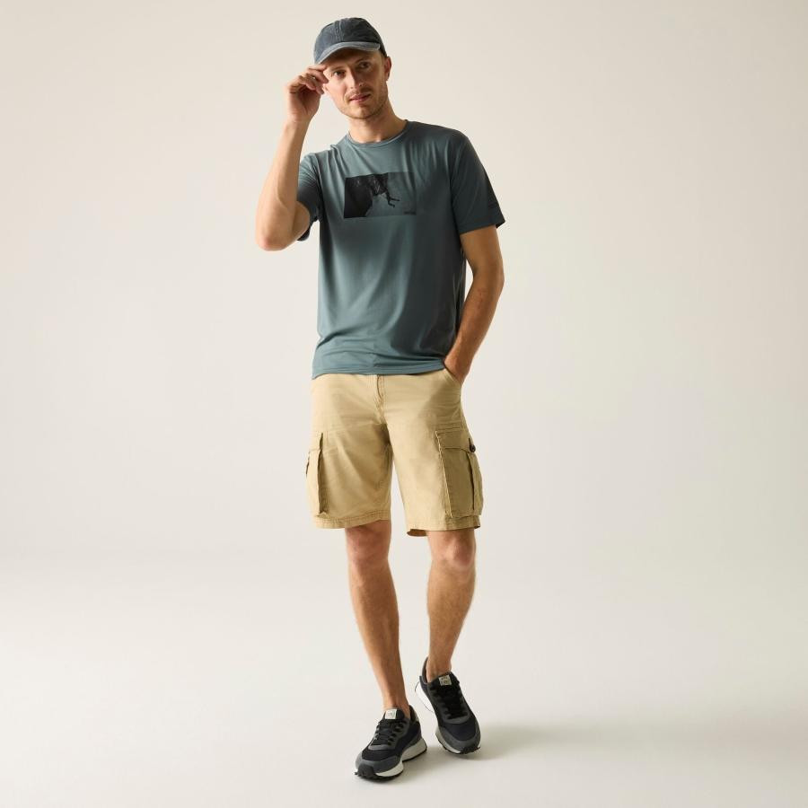 Ez a 92% poliészter és 8% elasztán összetételû soft-touch stretch jersey anyagból készült póló (160 g/m?) puha, kényelmes viseletet biztosít, miközben aktív mozgás közben is megtartja a formáját. A technikai szövet hatékony nedvességelvezető képességgel és gyors száradási tulajdonsággal rendelkezik, így ideális futáshoz, túrázáshoz vagy edzéshez. A grafikai nyomat stílusos megjelenést ad, a 50+ UPF UV-védelem pedig a nap káros sugarai ellen nyújt biztonságot.