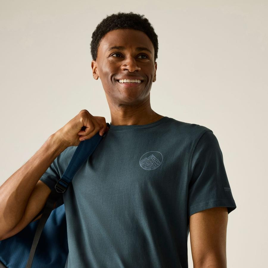 Ez a 100% pamut single jersey anyagból készült póló (160 g/m?) rendkívül puha, kényelmes viseletet biztosít egész napra. A stílusos grafikai nyomat modern megjelenést ad, miközben a 50+ UPF UV-védelem védi a bőrt a nap káros sugarai ellen. Ideális könnyû, hétköznapi vagy szabadtéri használatra, ahol a kényelem és a védelem egyaránt fontos.