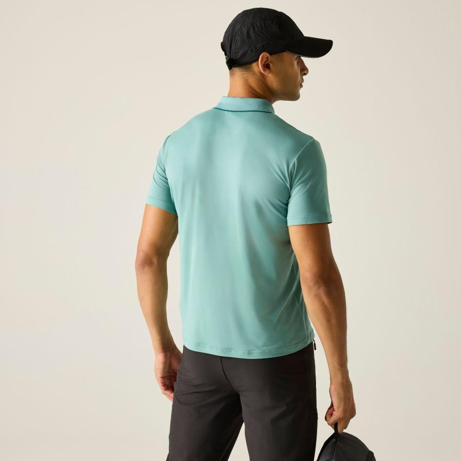 Ez a 95% poliészter és 5% elasztán soft-touch stretch jersey anyagból készült póló (130 g/m?) puha, kényelmes viseletet biztosít, miközben rugalmas szerkezetének köszönhetően aktív mozgás közben is jól követi a test vonalát. A technikai szövet hatékony nedvességelvezető képességgel és gyors száradással rendelkezik, a bordázott gallér pedig kényelmes, stabil illeszkedést biztosít. A 50+ UPF UV-védelem védi a bőrt a nap káros sugarai ellen.