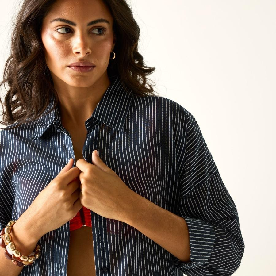 Ez a női ingruha 100% könnyû pamut voile anyagból készült, 85 g/m? súlyban. A finom, légies szövésû pamut kiváló szellőzést és kellemes komfortot biztosít meleg időben. A laza szabás és a klasszikus galléros kialakítás időtálló, mégis könnyed megjelenést eredményez.