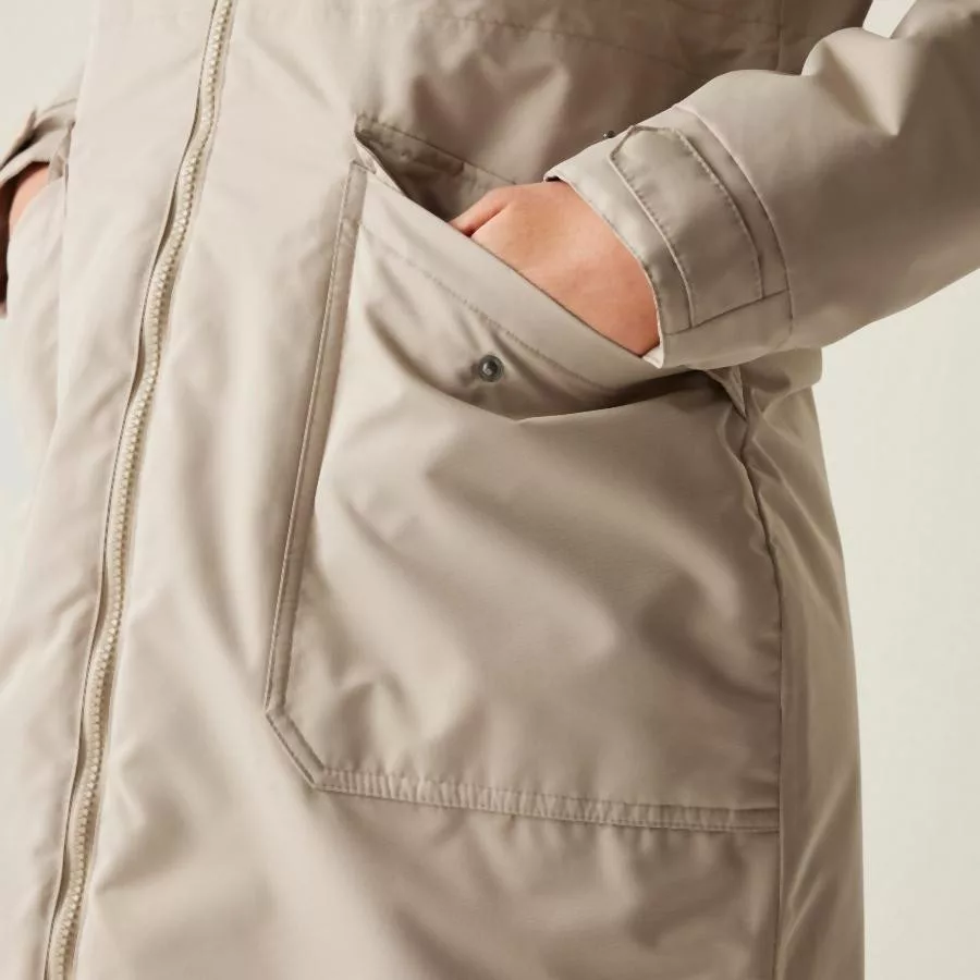 megjelenést kölcsönöz a kabátnak. A beépített kapucni és a ragasztott varratok extra védelmet nyújtanak